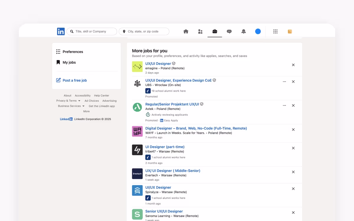 LinkedIn was launched back in 2003 and has become one of the largest professional social networks and a leading job board. If you're looking for a career change on LinkedIn, you can start by creating your profile (unless you already have one) and browse jobs at a variety of established companies and startups.