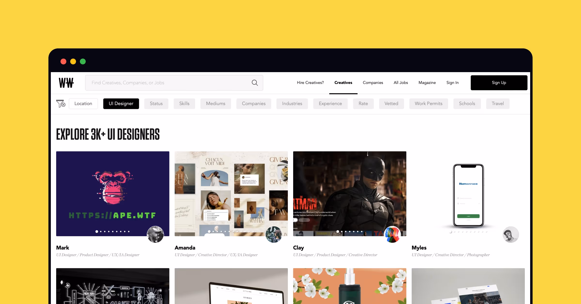 If You Could Jobs doesn’t feature a directory of skilled designers in the UI and UX design niche, like a few other platforms on this list. Instead, you have to do the heavy lifting of posting a role and sourcing the best candidates from the limited number of applicants.