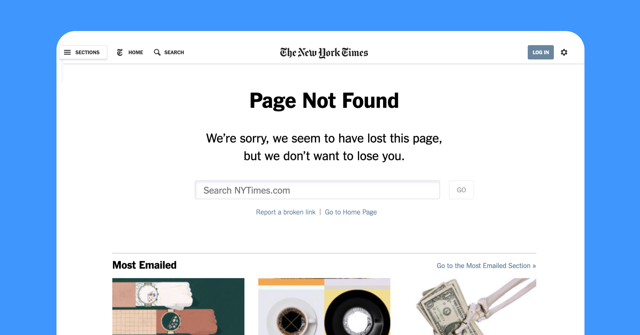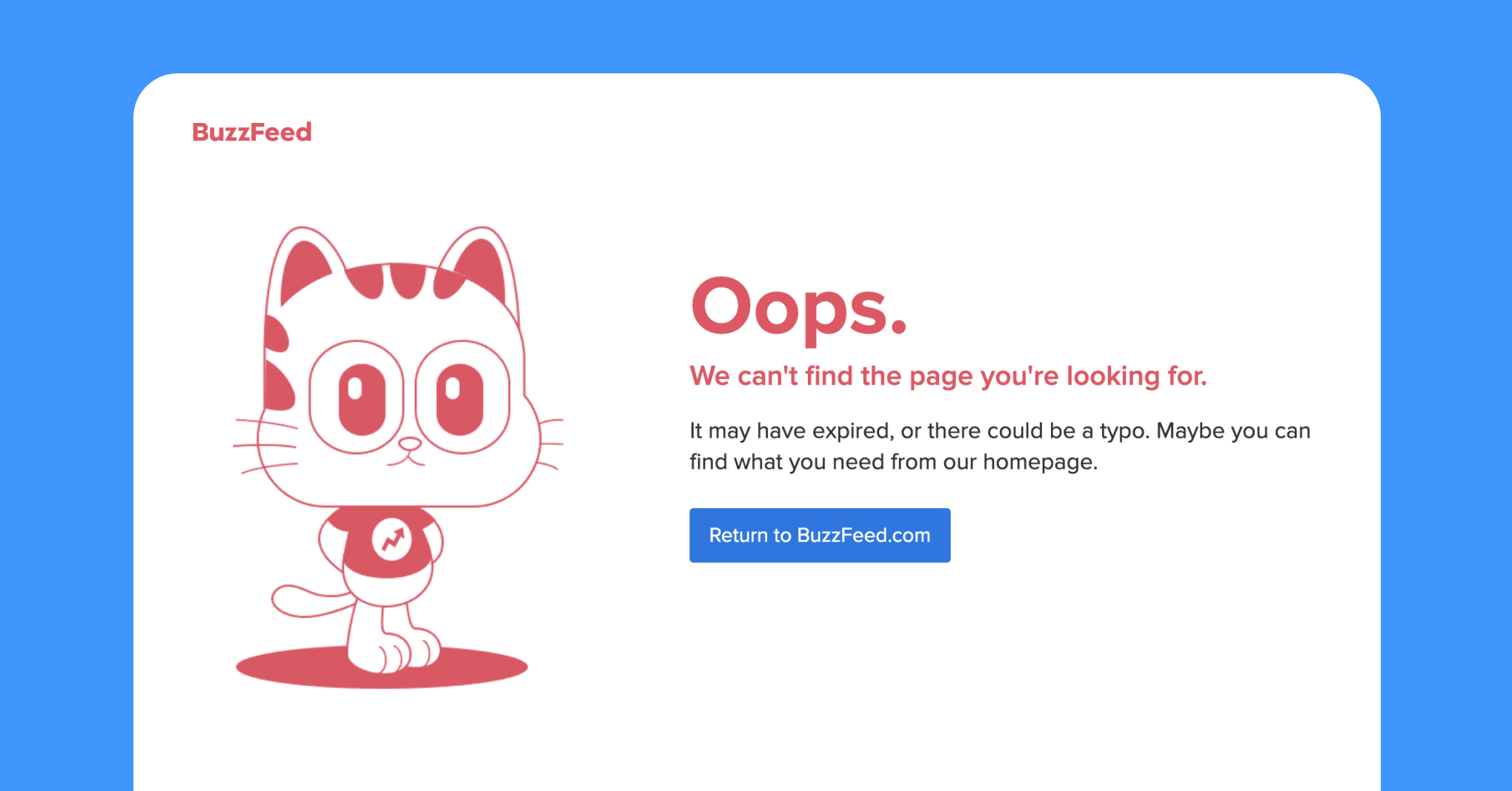 Even if it's the first interaction with a product's website, people are less likely to feel disappointed upon encountering a well-designed and helpful error page. A large, on-point illustration and creative copy are a great introduction to the brand, and they also offer a solution to the problem.