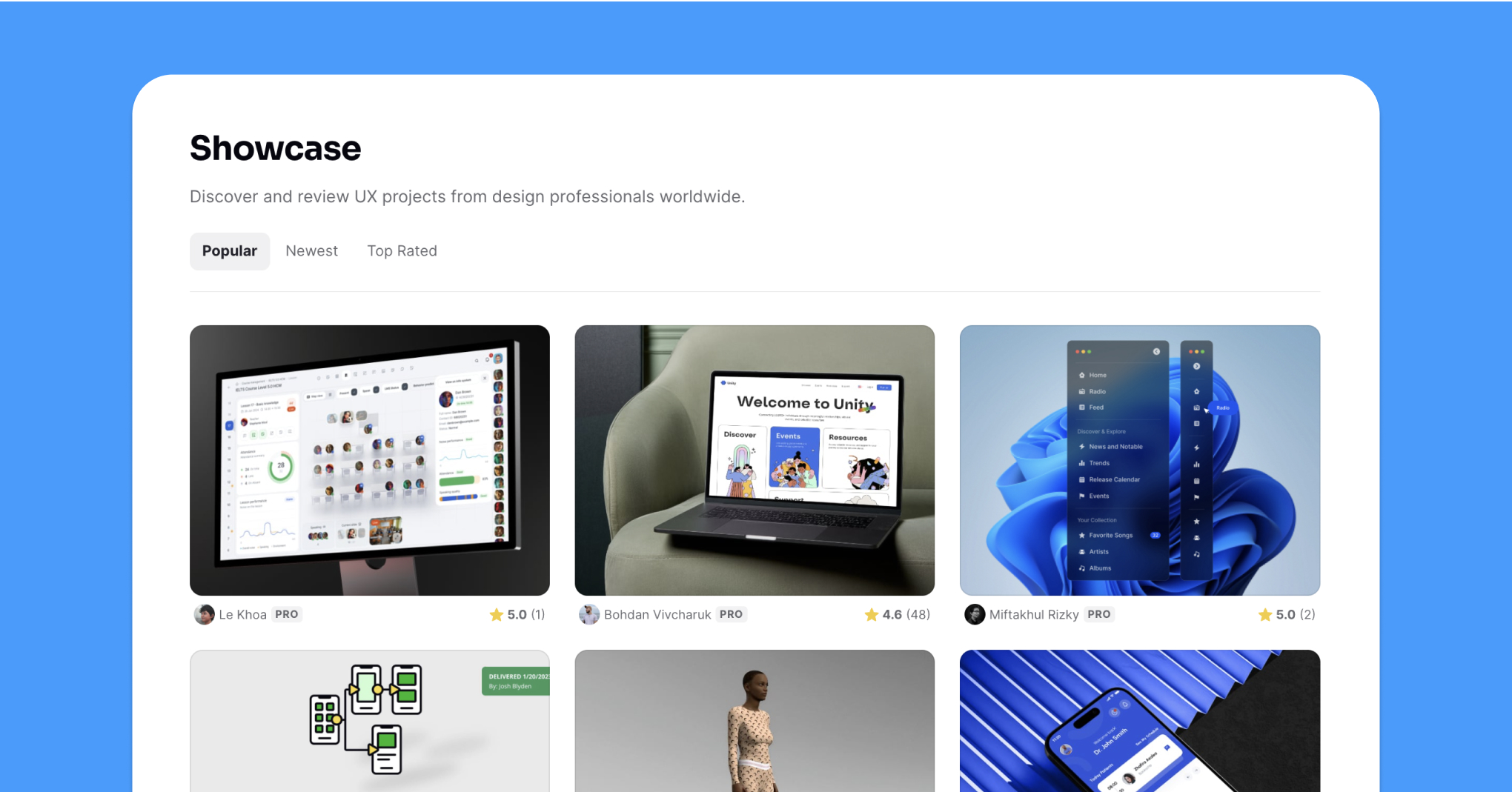 - Get recognition from the Uxcel community. Any project you submit is eligible for our regular Community and Editor’s Choice awards. Award-winning projects are tagged with a unique badge and highlighted in the showcase. This recognition can help your work be seen by thousands of members, and you can share your accomplishments on LinkedIn or with potential employers.