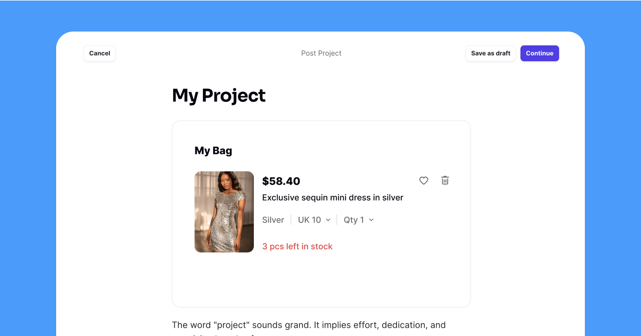 The word "project" sounds grand. It implies effort, dedication, and creativity, but also fun. A project on Uxcel is no different. It's the design work you submit to share with Uxcel's community, created to help designers share, explain, and discuss their work. Submitting a project on Uxcel is a fantastic opportunity to build a digital portfolio without the need to develop a website.