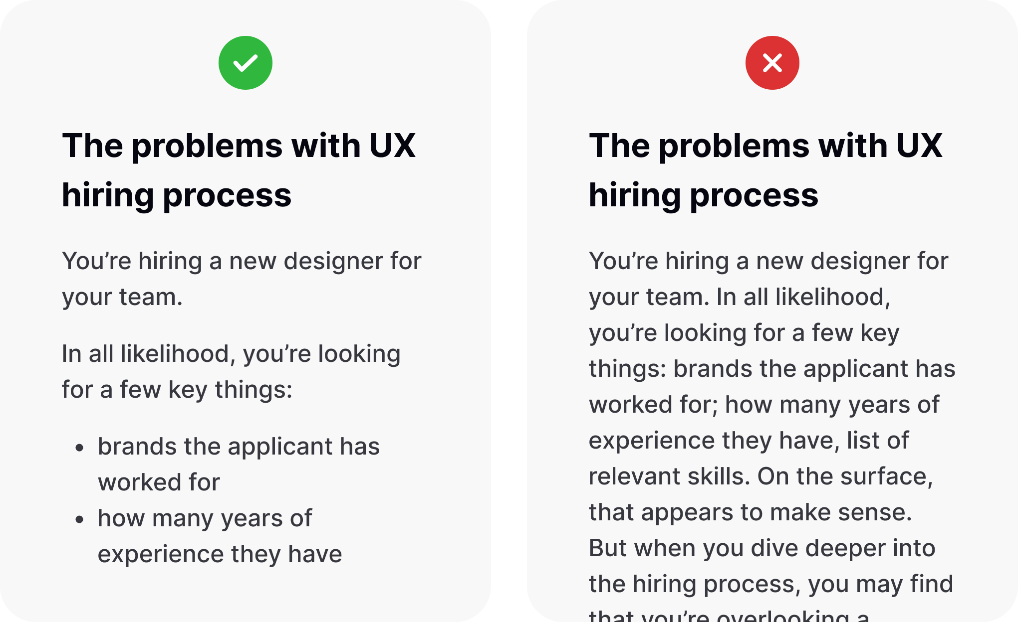 - Using short text lines of around 45–75 characters. This helps users understand the message faster and prevent them from losing track.