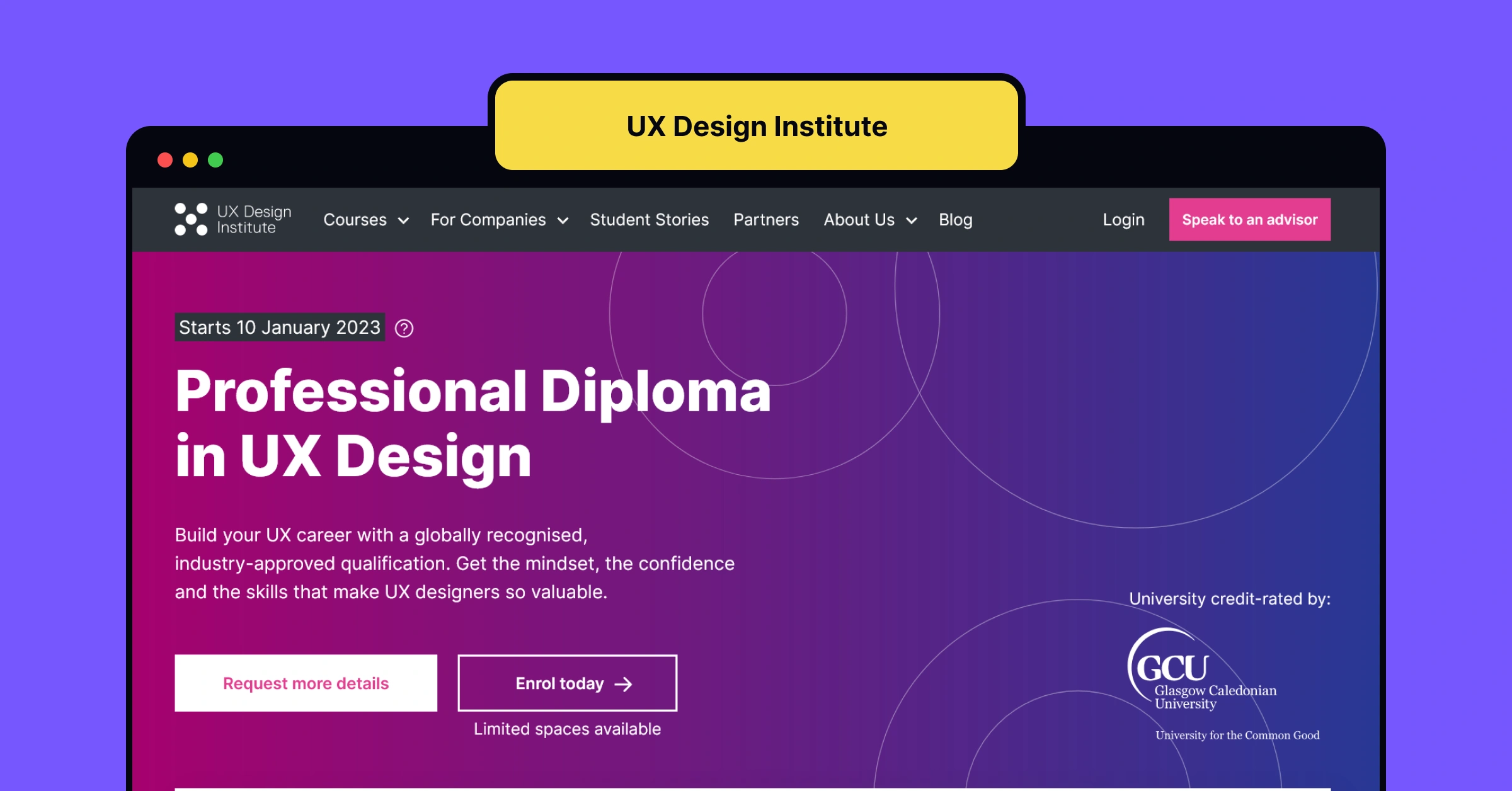 The certifications and diploma programs at the UX Design Institute equip students with transferable skills to secure their dream roles in the industry. Enrolling in these programs also helps you network with a community of learners and interact with like-minded individuals.