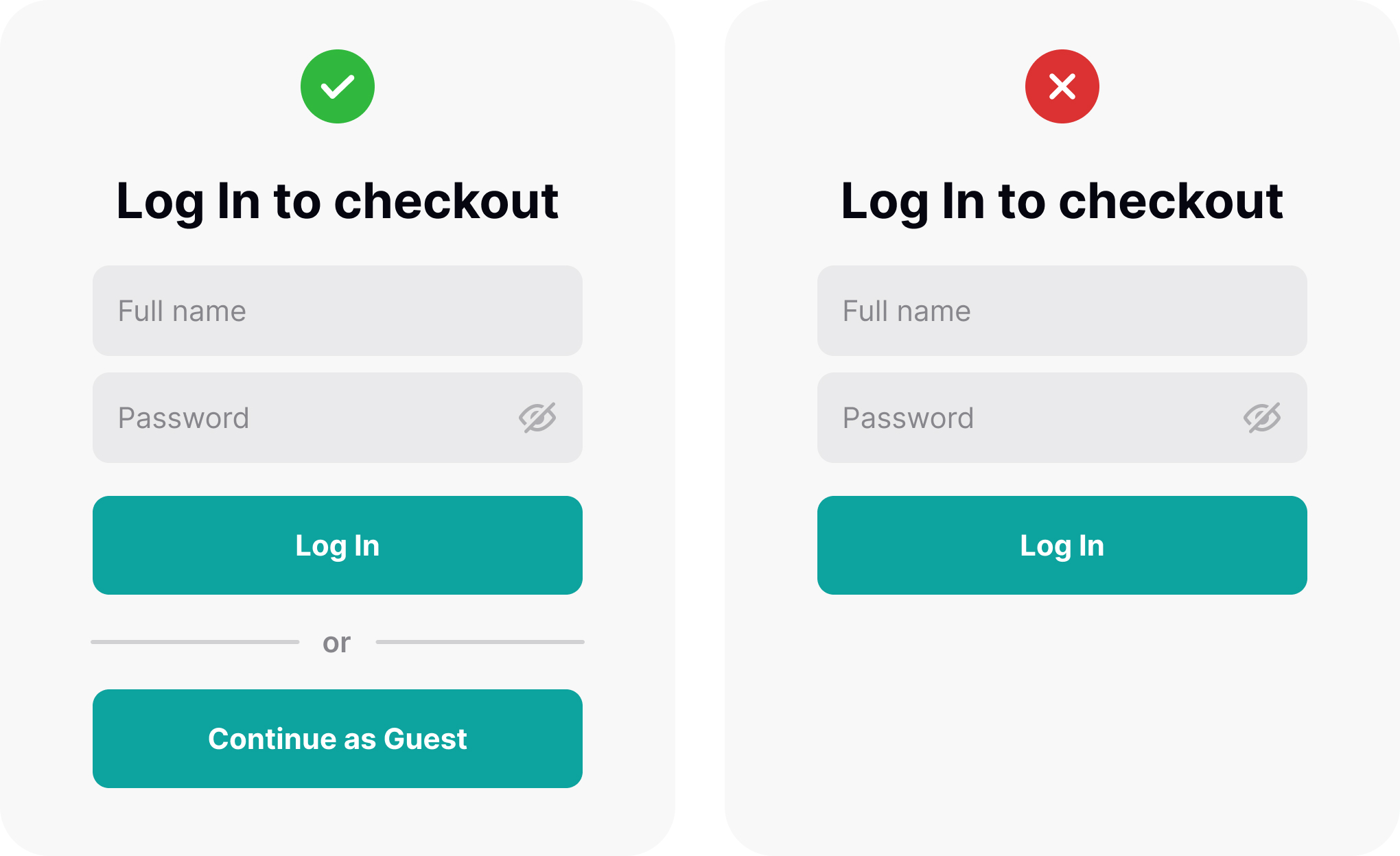 - Forced user flows: Imposing rigid and forced user flows restricts users' freedom to navigate the interface according to their preferences. An example is making registrations mandatory for shopping without the option of guest checkout.