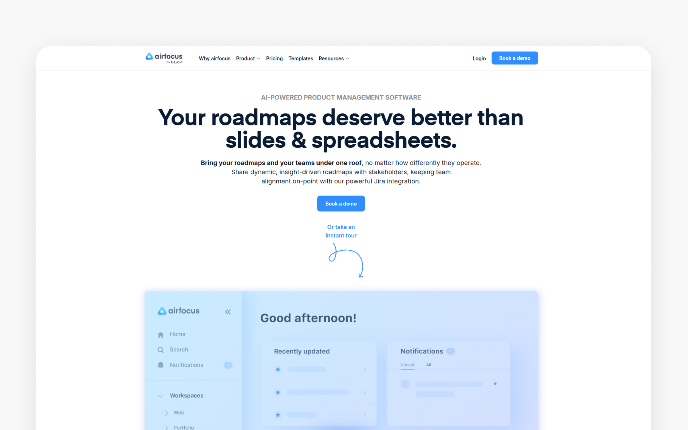 Best for: Product teams, strategic planning, portfolio management, 10-500+ people