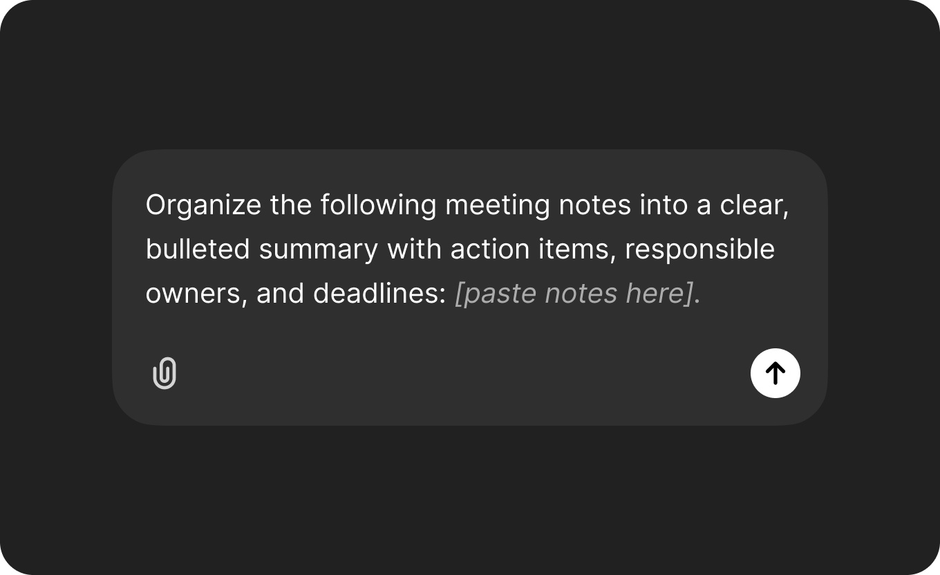 Messy notes waste time. ChatGPT can restructure them into a clean, scannable format so your team knows exactly what to do next.