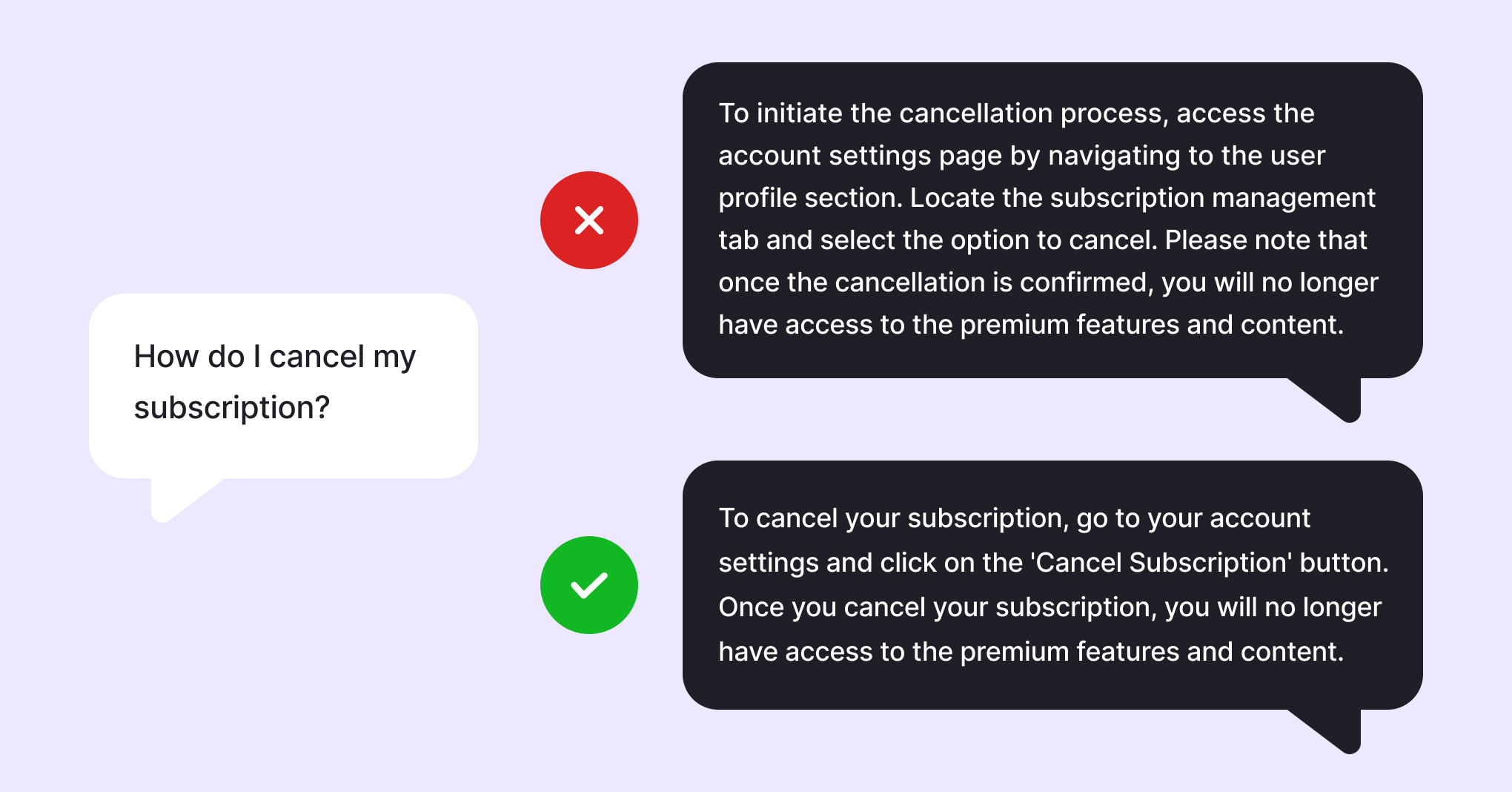 - Clear and concise language: Use clear and concise language in prompts and responses to enhance comprehension for users with cognitive disabilities or language barriers. Avoid using complex jargon or ambiguous terms that might confuse or alienate users.