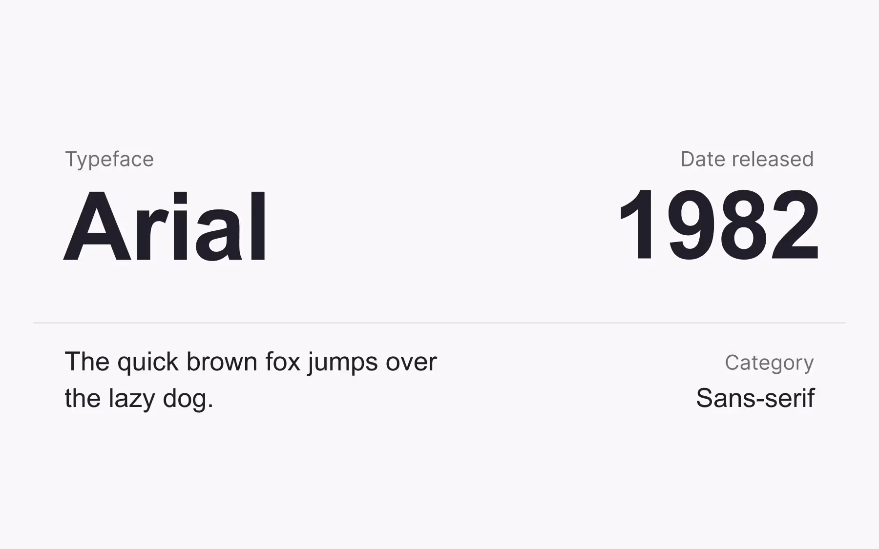 Arial is a sans-serif typeface created in 1982 by American company Monotype Imaging. It's similar in appearance to Helvetica and comes preinstalled on most devices.