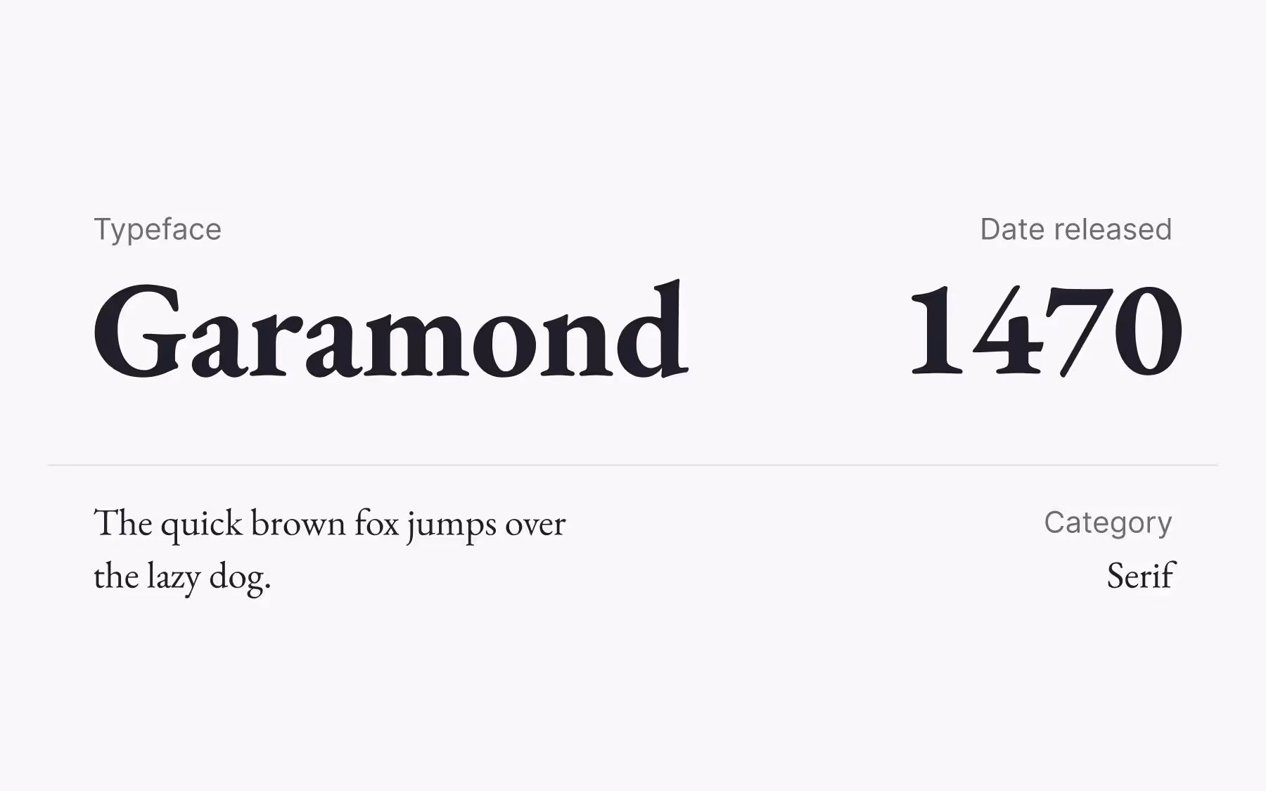 The Garamond typefaces have seen many revivals since they were first designed and have long been a favorite for books and body text. Surprisingly, the original Google logo used Garamond typeface.
