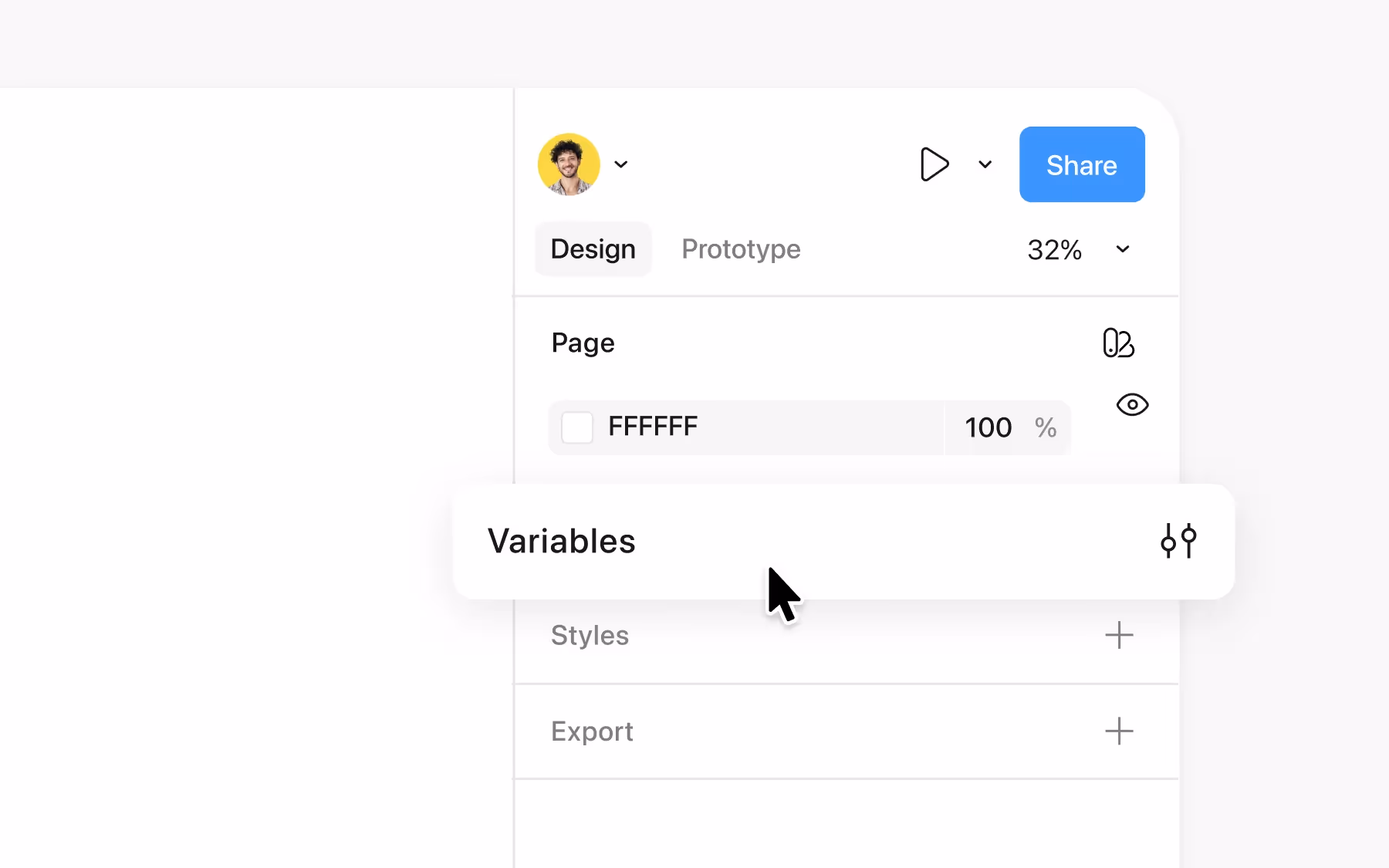 Variables function like design tokens. They capture important details, colors, spacing, labels, and more, and store them in a reusable format. That makes updates faster and ensures consistency across files.