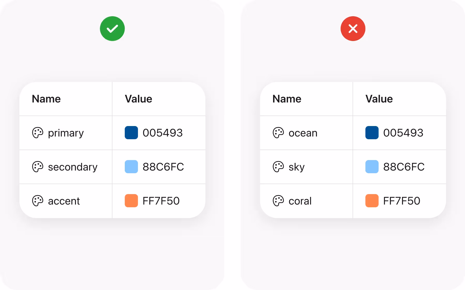 This structure allows large teams to collaborate more effectively. Designers know where to look for values, developers can map variables to code more easily, and updates become less error-prone.
