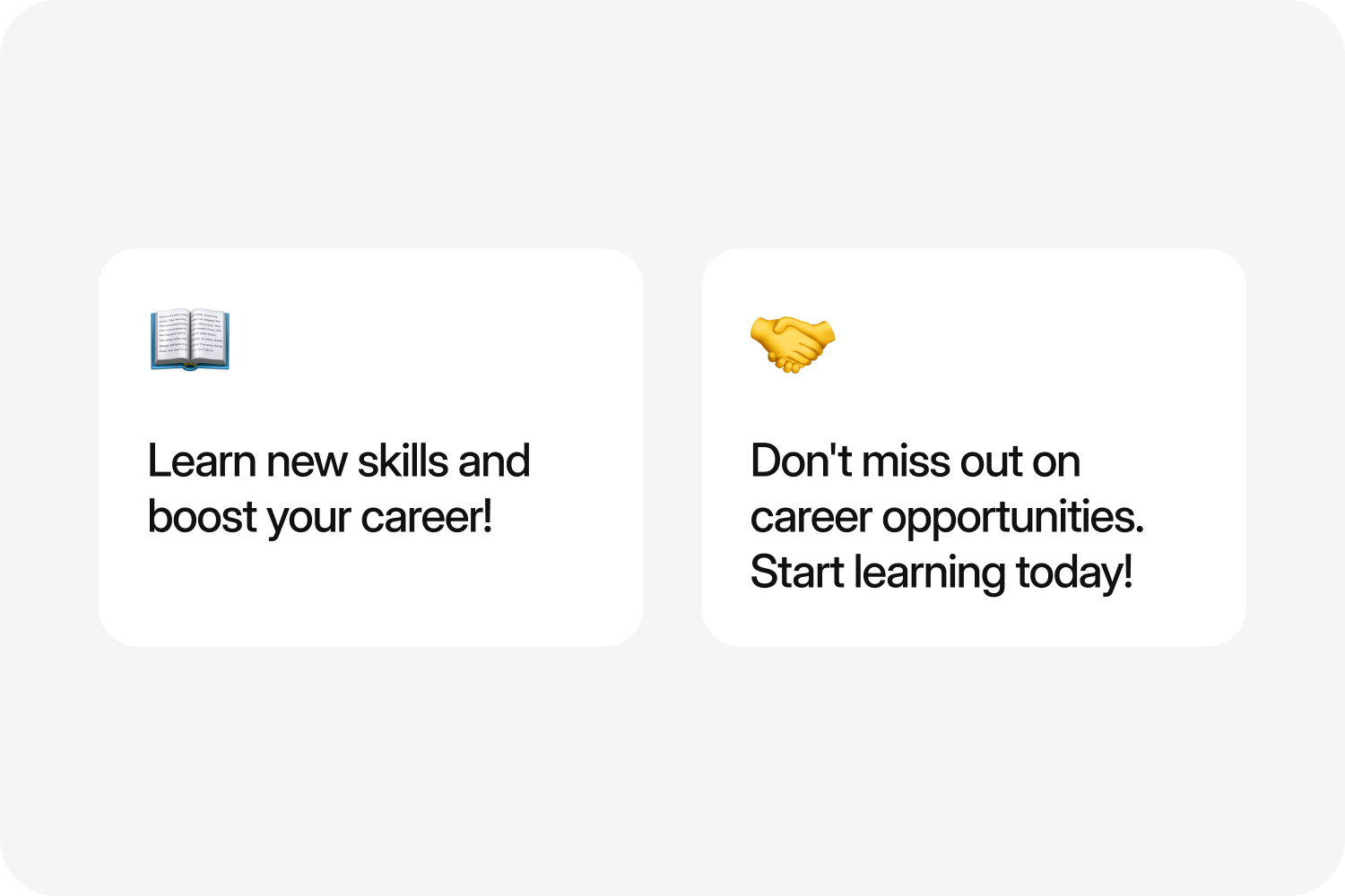 - Loss frame: "Don't miss out on career opportunities. Start learning today!"