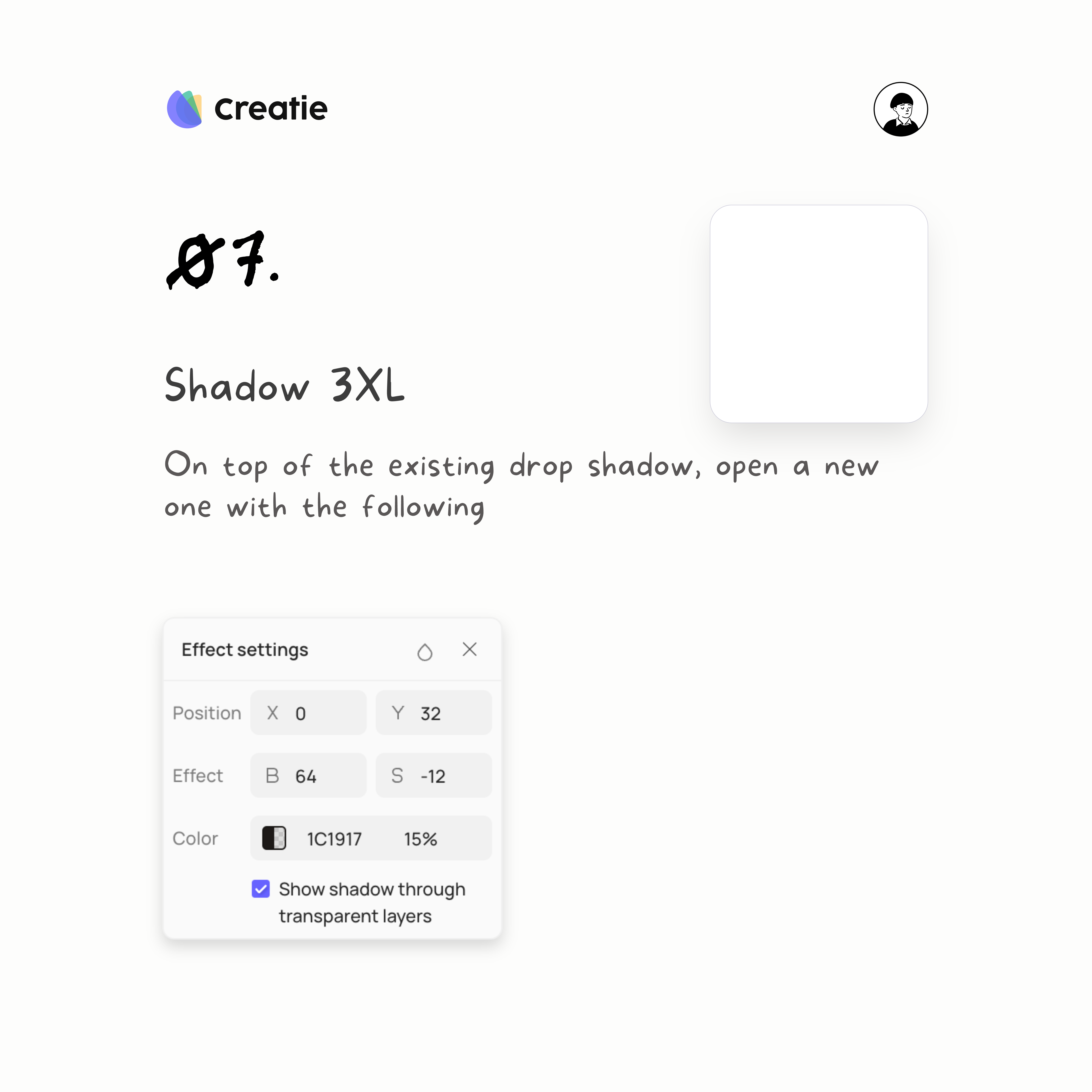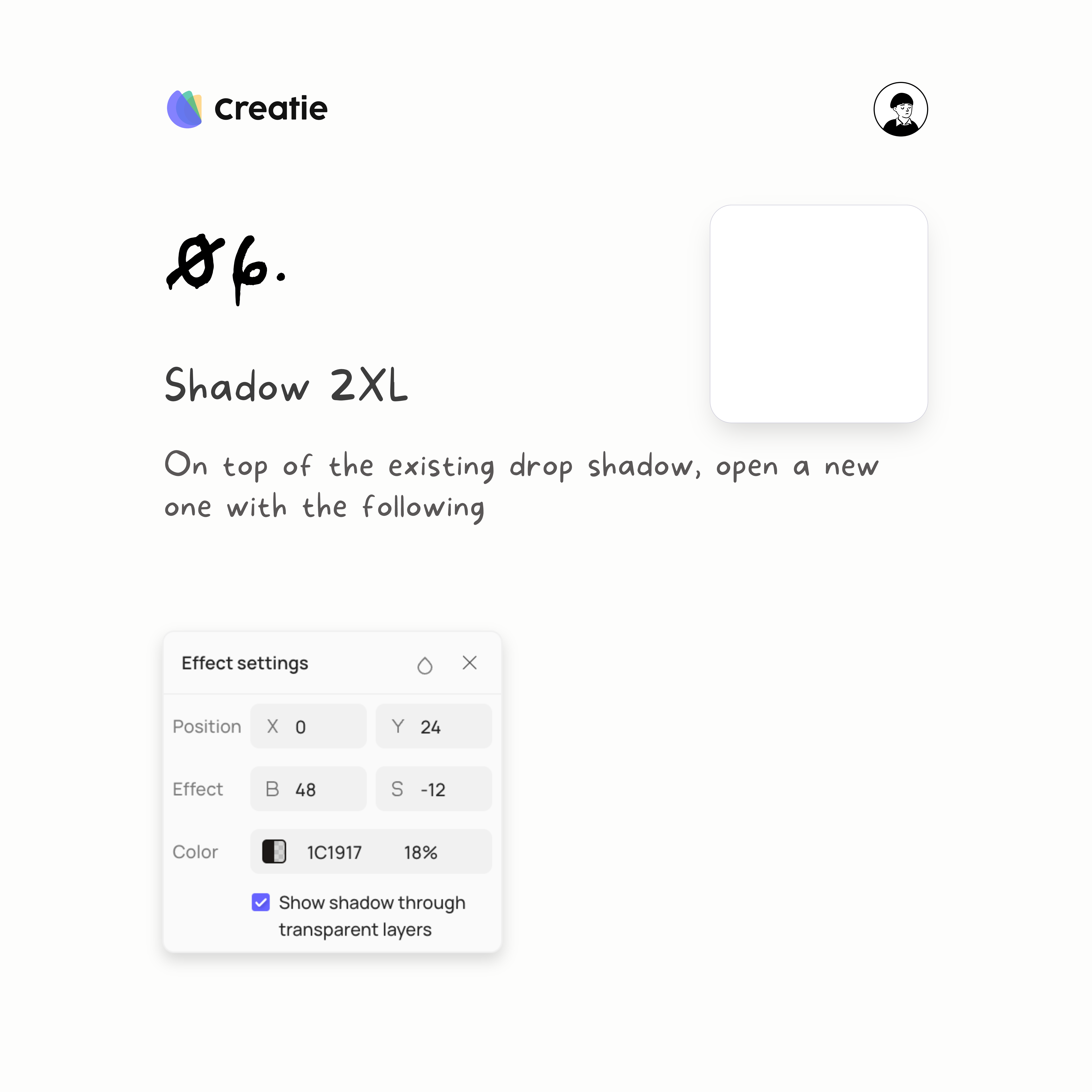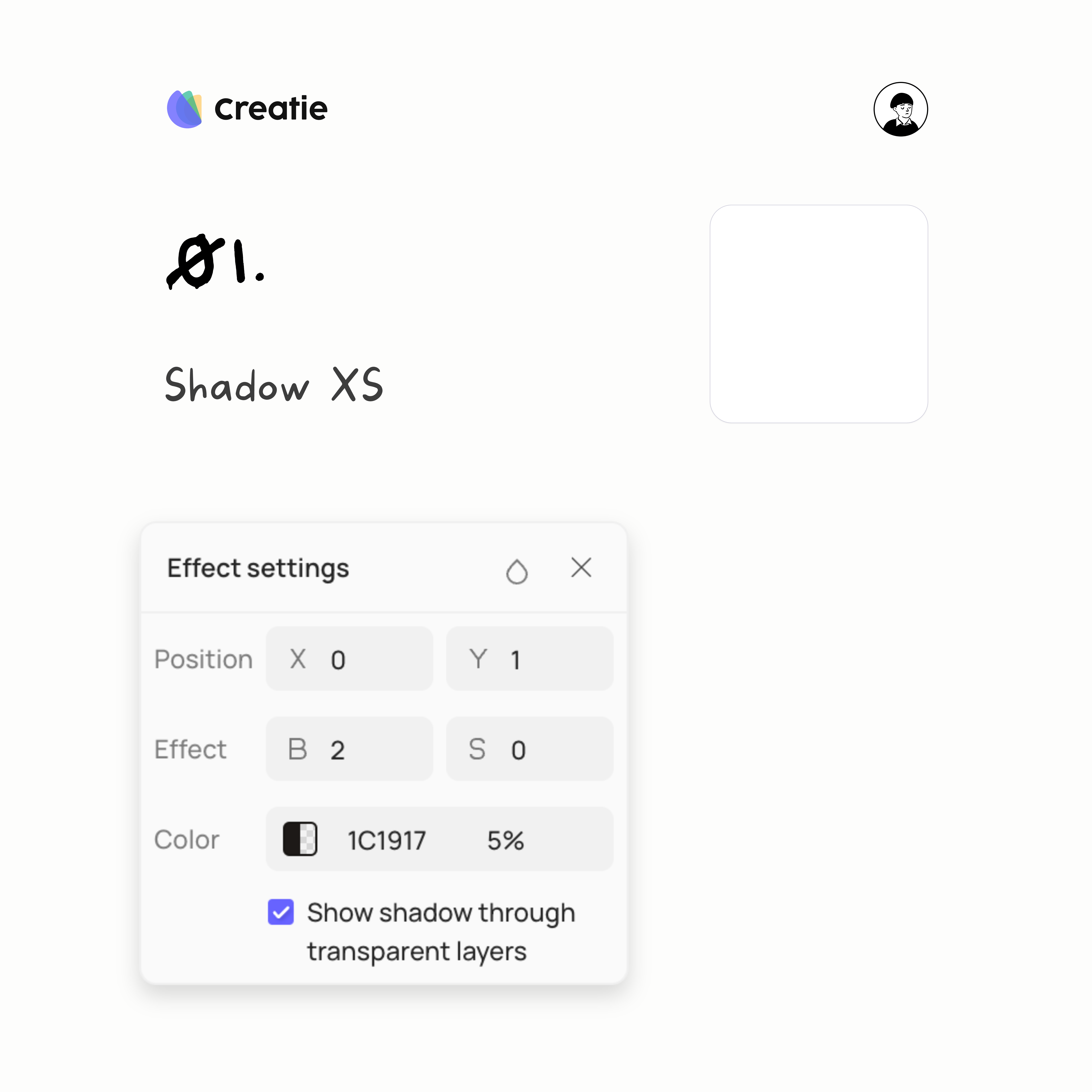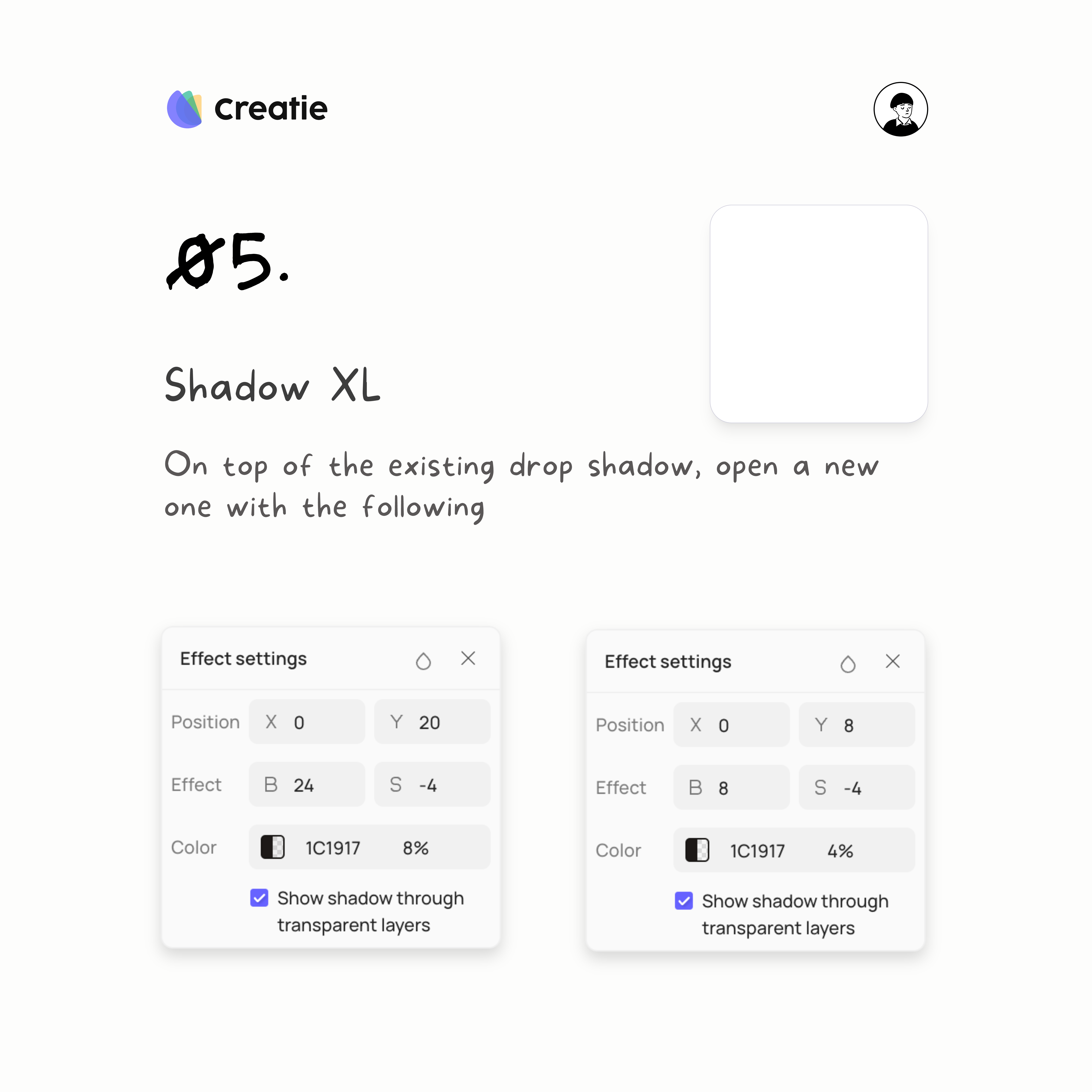 Shadow XS is the first and most subtle shadow in this series. To create this effect:
