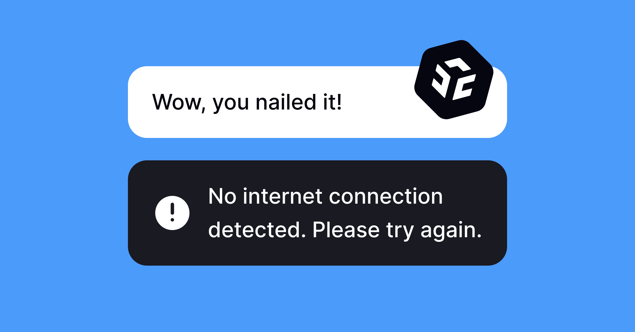 For example, Uxcel's voice is experienced, knowledgeable, and friendly, providing users with confidence as they master UI/UX design. However, the tone can vary based on the situation. It can be excited and encouraging: "Wow, you nailed it!" Or it can be serious and straightforward: "No internet connection detected. Please try again.”