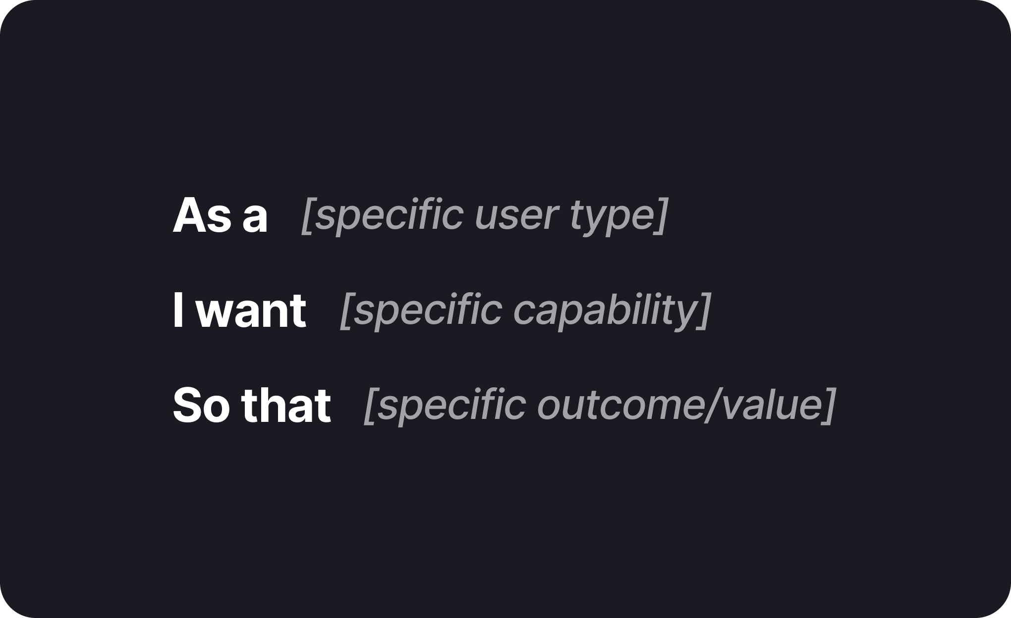 Let's break down what actually goes into a user story. Here's the structure that works: