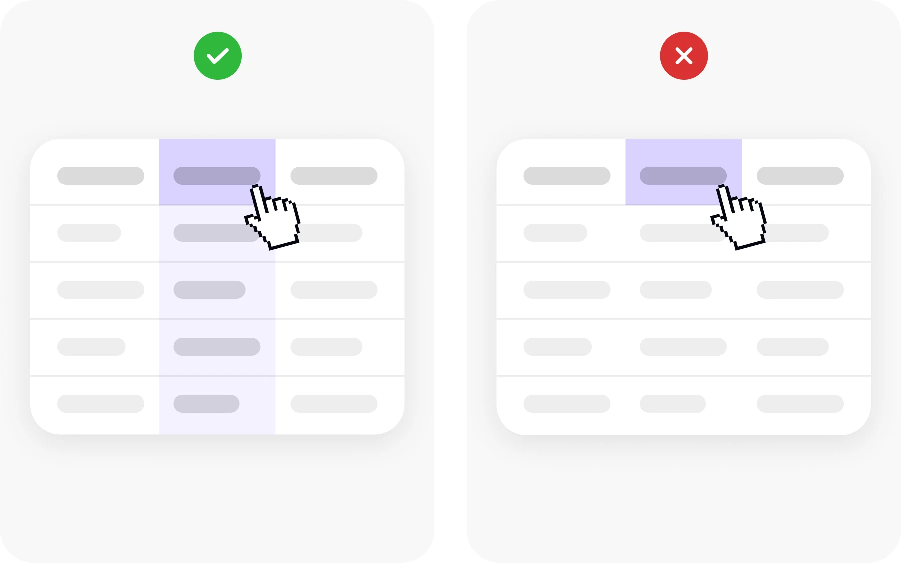 The law of common region also makes it possible to organize multiple groupings within the same interface. Tables comparing products often need to show relationships both by column and by row. Designers can alternate background colors for rows, use borders for columns, and add hover effects to highlight active cells, creating a layered set of common regions.