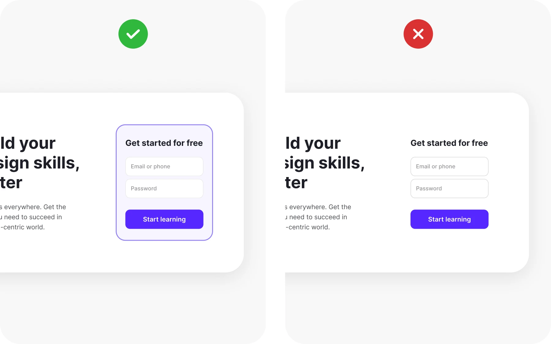 This approach works especially well for calls to action or critical messages. By combining grouping with contrast, designers guide users toward essential interactions without overwhelming the overall design. The highlighted region acts as both a container and a spotlight.