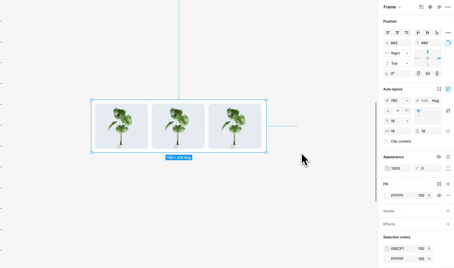 Once activated, Auto Layout will automatically adjust the frame and its content. You can also select multiple items and turn on Auto Layout. This will create a new frame with all the selected objects inside it.