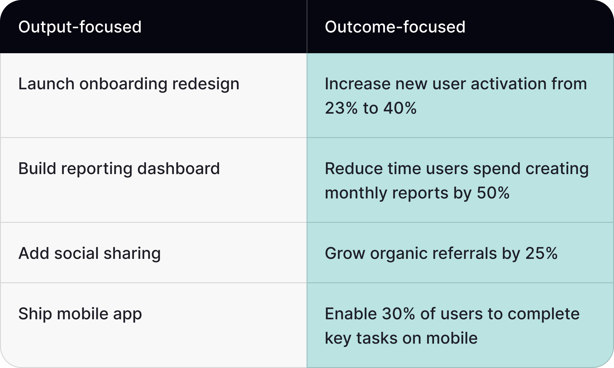 Outcome-focused thinking flips the script. Instead of starting with "what should we build?", you start with "what should change?"
