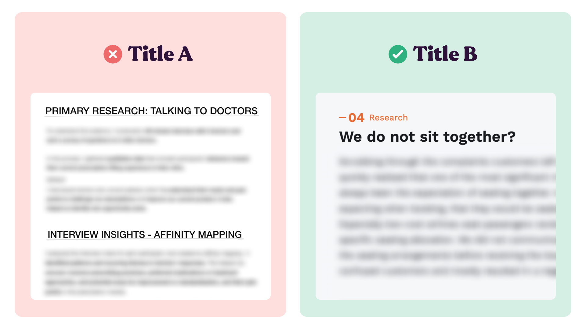 ✅ Example B: Martin Jancik is a design manager at Kiwi (the flight booking engine). If you just read this title and you connect the dots you immediately understand that "We do not sit together" is probably about seat assignments. This headline leads with a great insight, not a design process step.
