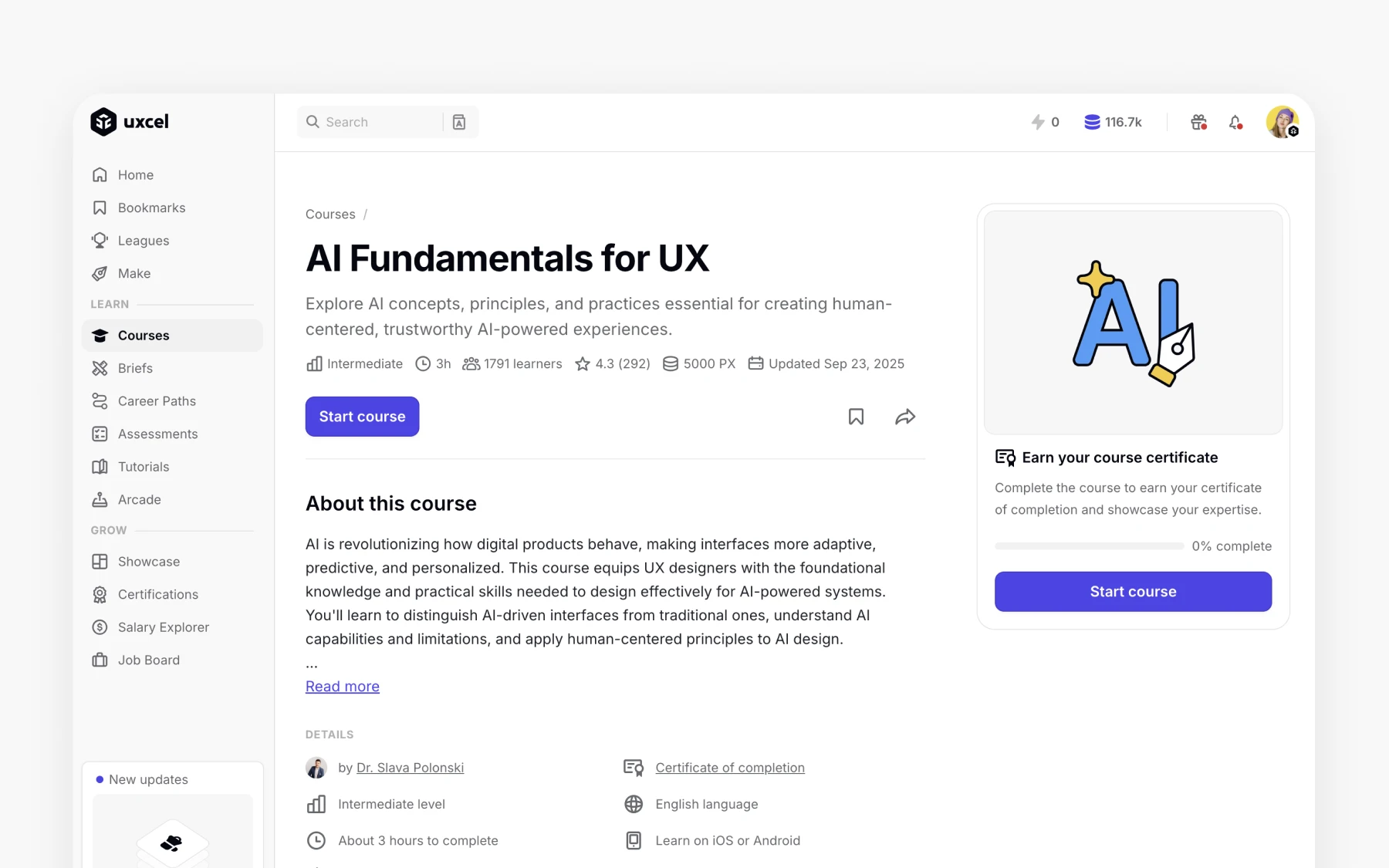 If you want to learn AI practically, efficiently, and without being overwhelmed by jargon or theory, Uxcel is the best certification path to take right now, especially if you prefer interactive learning over static lectures.