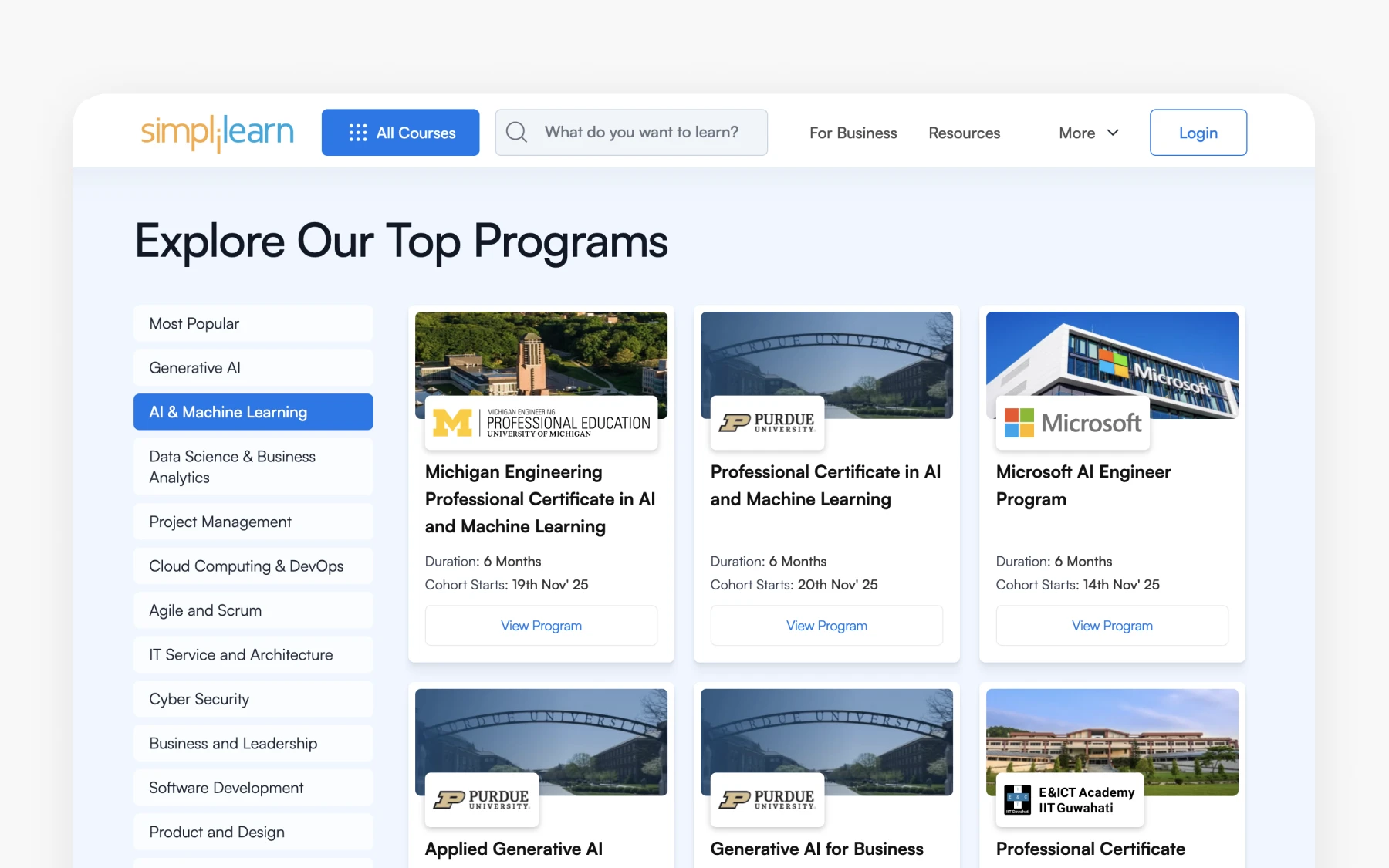 6. Simplilearn SkillUp — Professional certificate in AI and machine learning