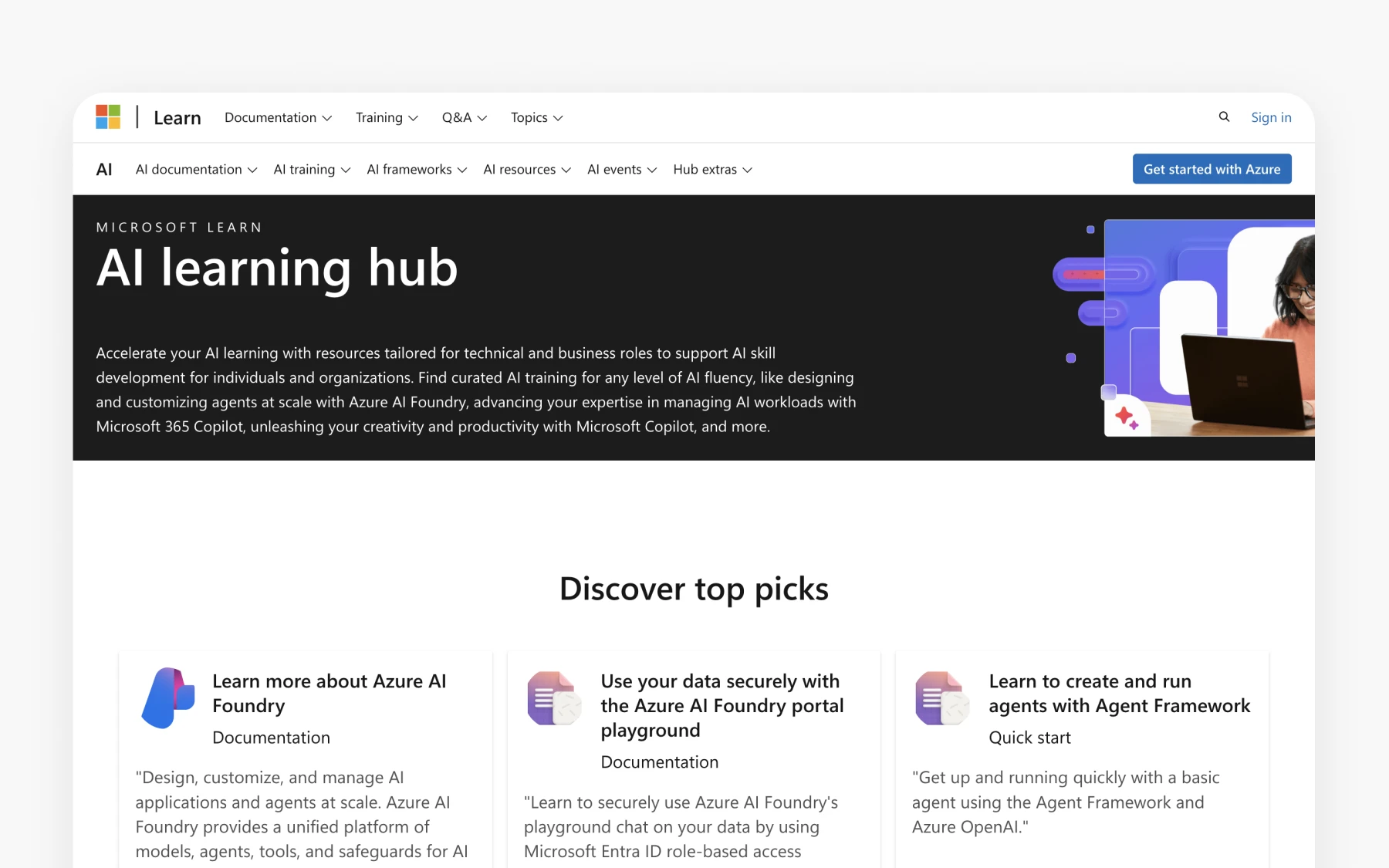 Microsoft Learn offers a free learning path titled “AI learning hub,” which is designed for beginners with no prior experience in AI. This course explains the core concepts behind AI systems, including machine learning, computer vision, natural language processing, and conversational AI. It forms part of the Microsoft Azure AI Fundamentals preparation track but is open to anyone for free.