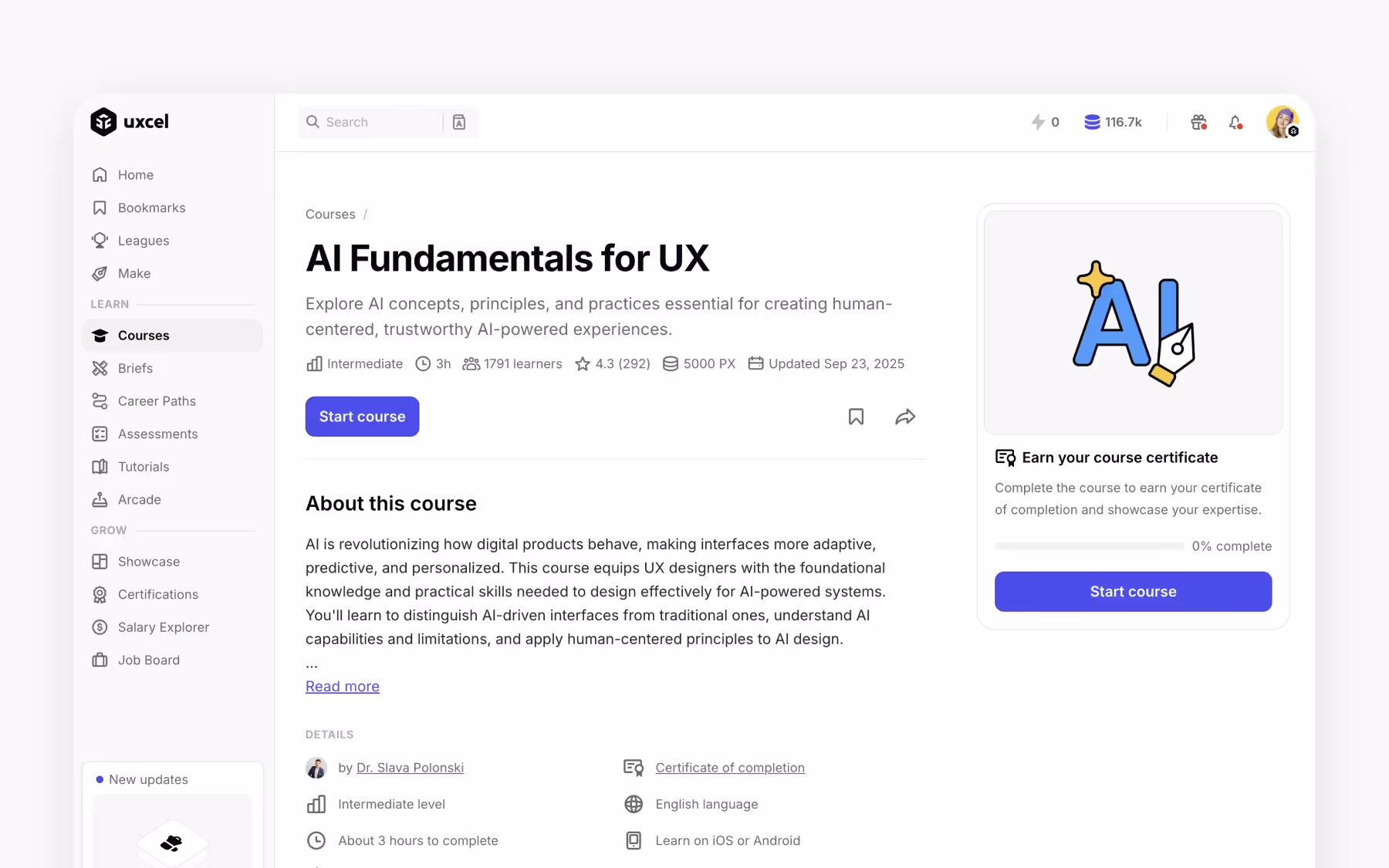 Uxcel, known for its bite-sized, interactive learning for UX and Product professionals, is venturing into AI and PM. This new series of courses are targeting both beginners and professionals who are searching for polishing their skills, or starting their journey with AI.