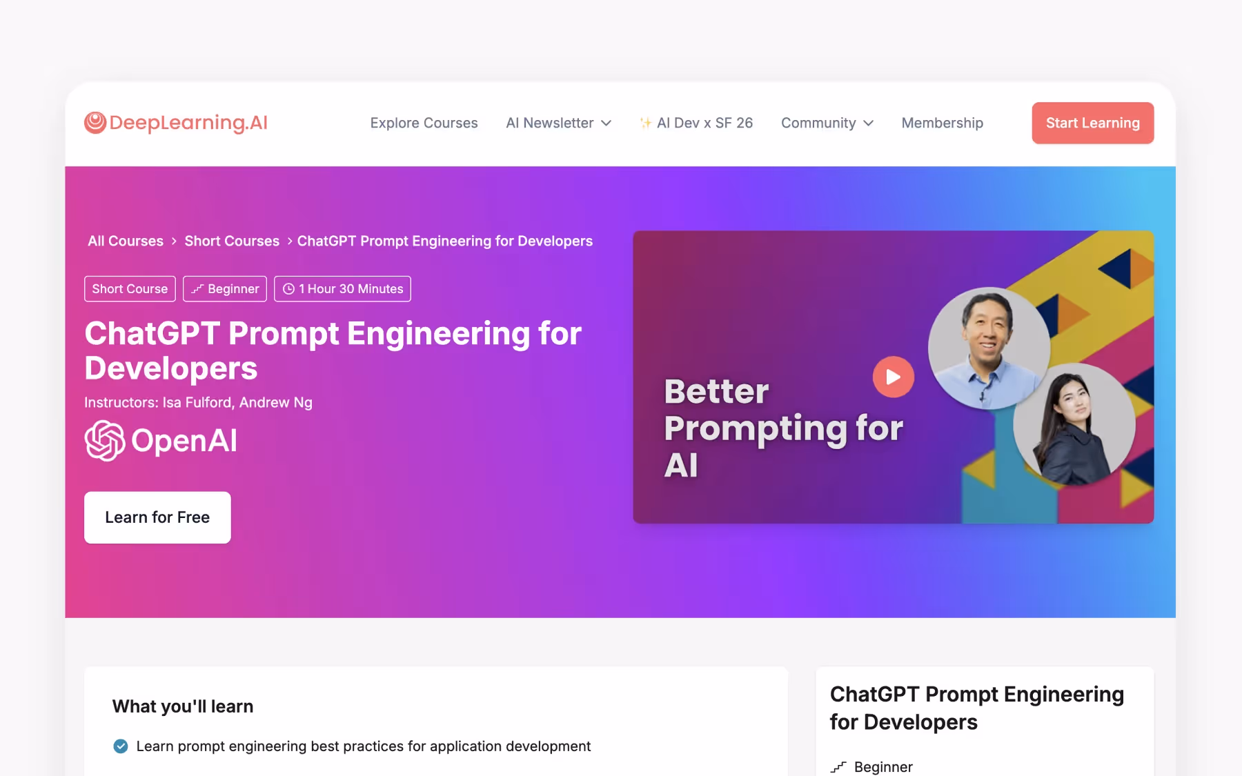 Because it's taught by Andrew Ng and his team, the content is structured, efficient, and grounded in real developer workflows. It’s one of the most practical introductions to prompt engineering currently available for free.
