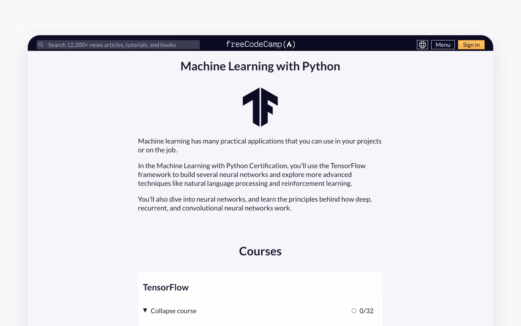 freeCodeCamp offers a comprehensive and fully free AI & Machine Learning with Python curriculum that targets aspiring developers and data scientists. This course is part of the broader freeCodeCamp ecosystem, which has trained millions of learners globally in programming, data science, and web development. The AI track includes hands-on exercises, video tutorials, and project-based lessons all available without a paywall.