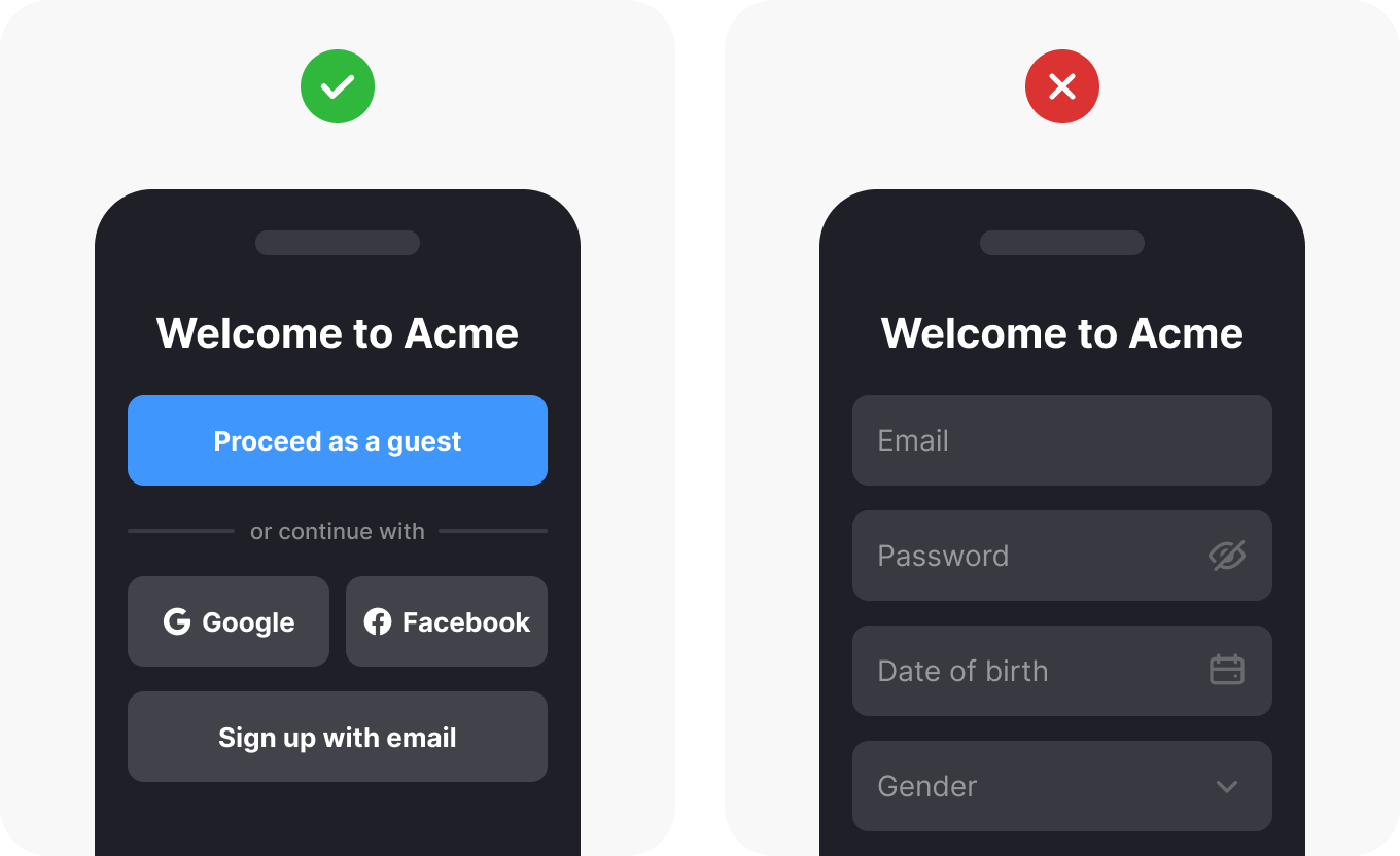- Use clear instructions and offer options like social media or single sign-on for ease.