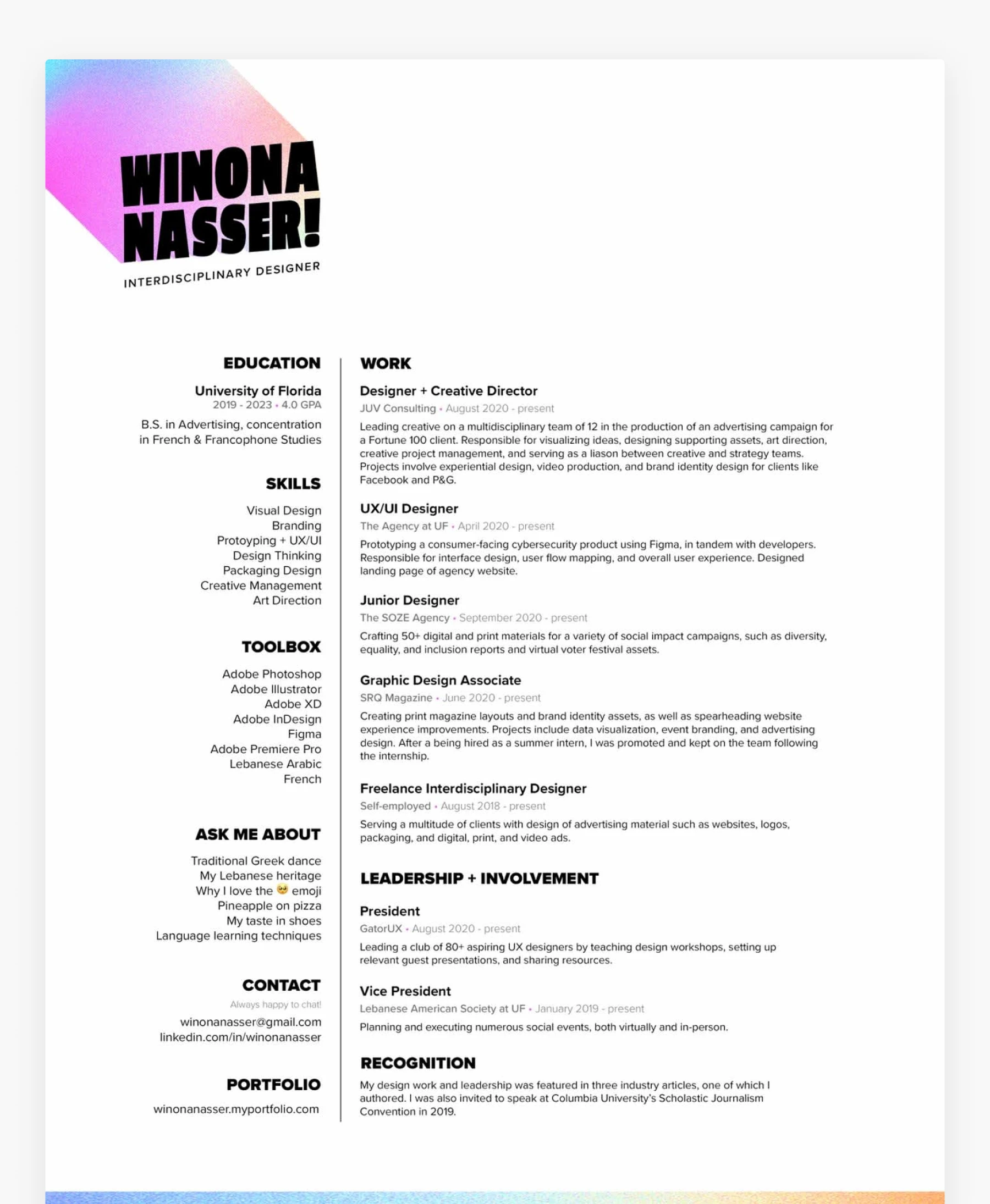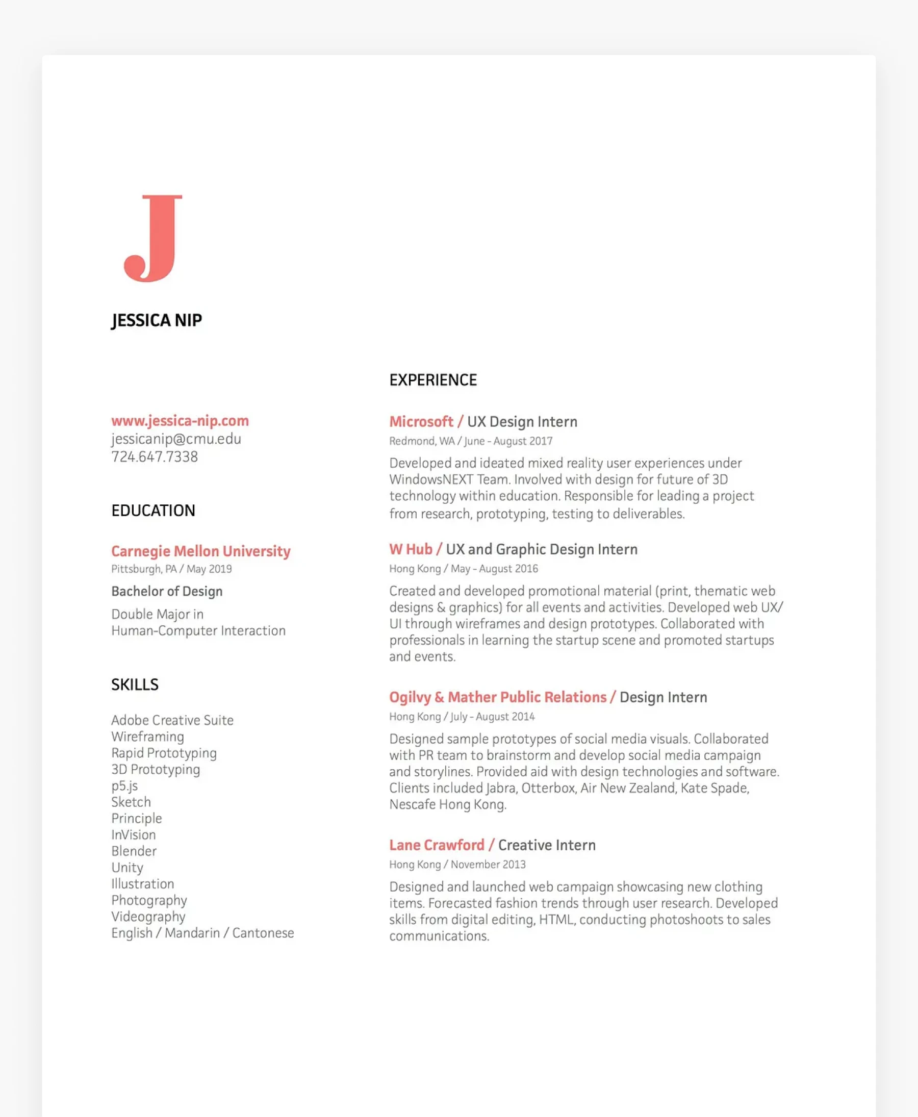 - Make it yours: you’re applying to be a designer, so let your design personality shine through.